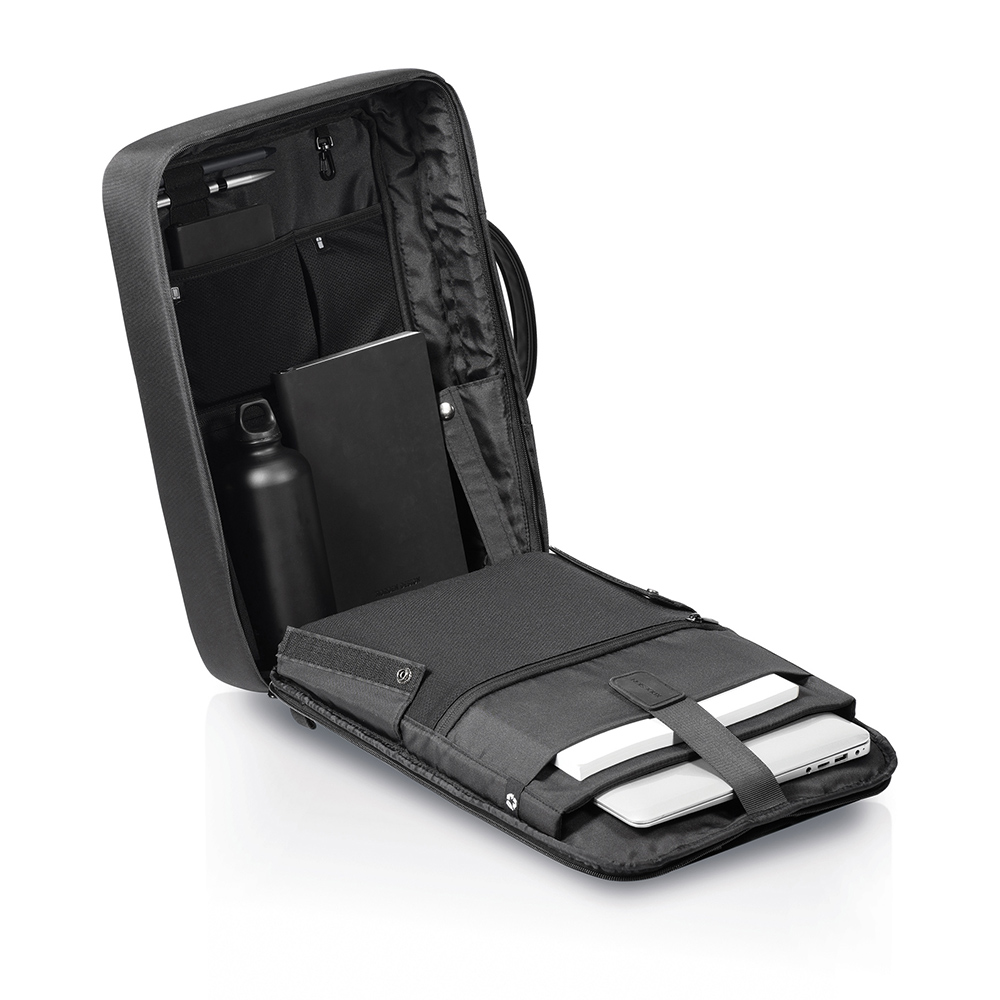 Vous pouvez transformer ce sac à dos en porte-documents en quelques secondes, simplement en mettant les bretelles dans la poche arrière.